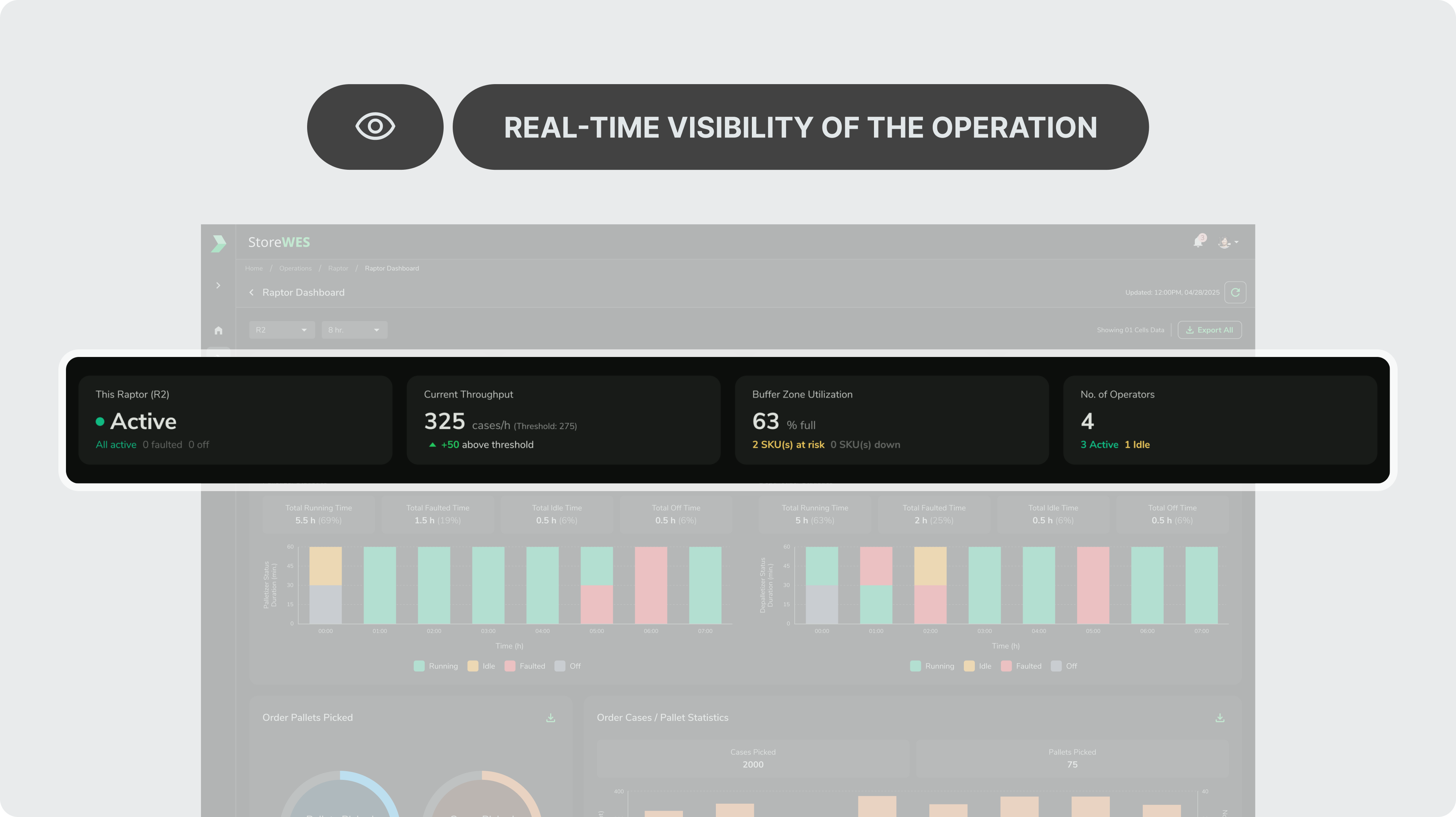 Warehouse managers needed a clear way to monitor RAPTOR system performance during fast-paced, high-volume operations, where small issues could quickly impact throughput.